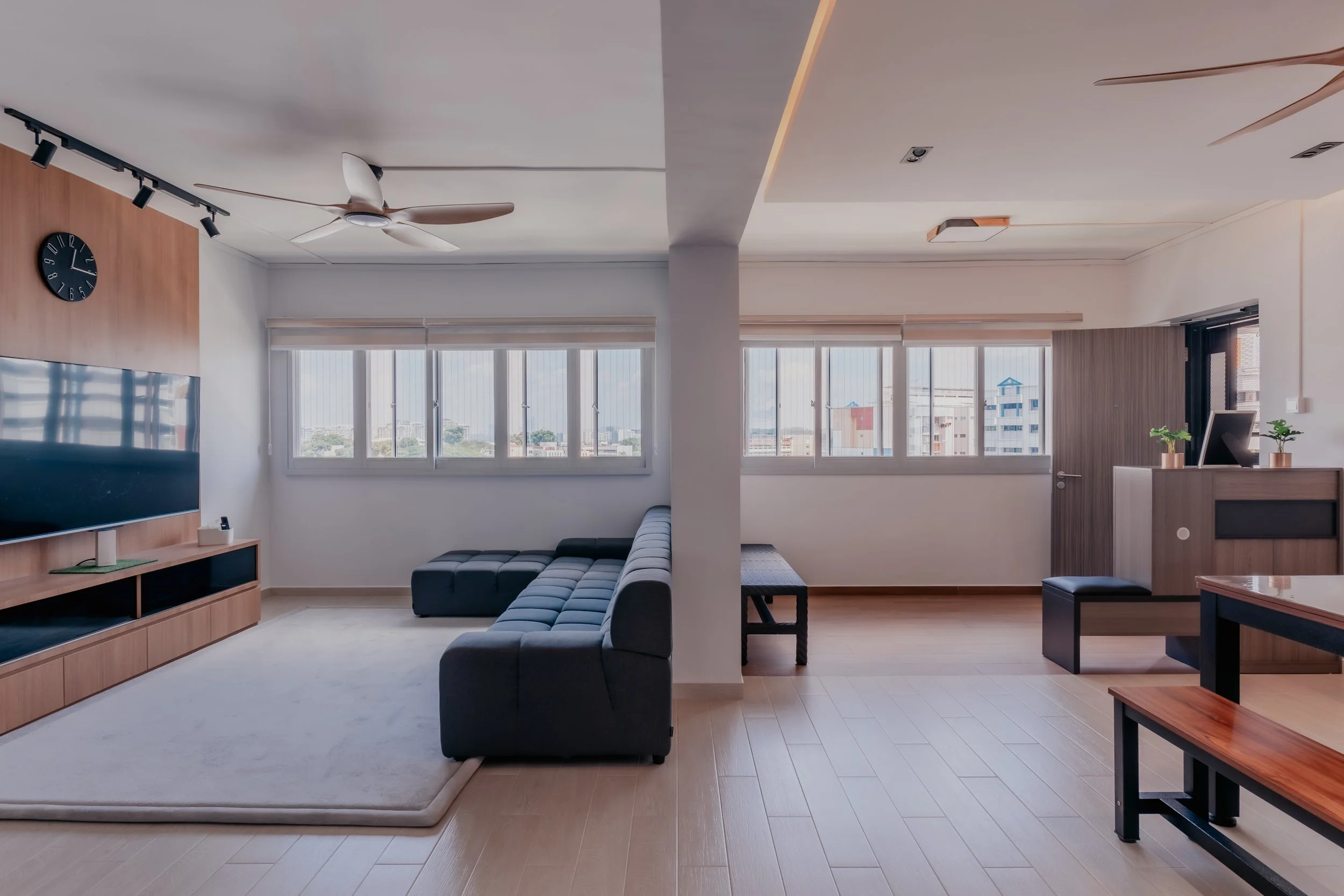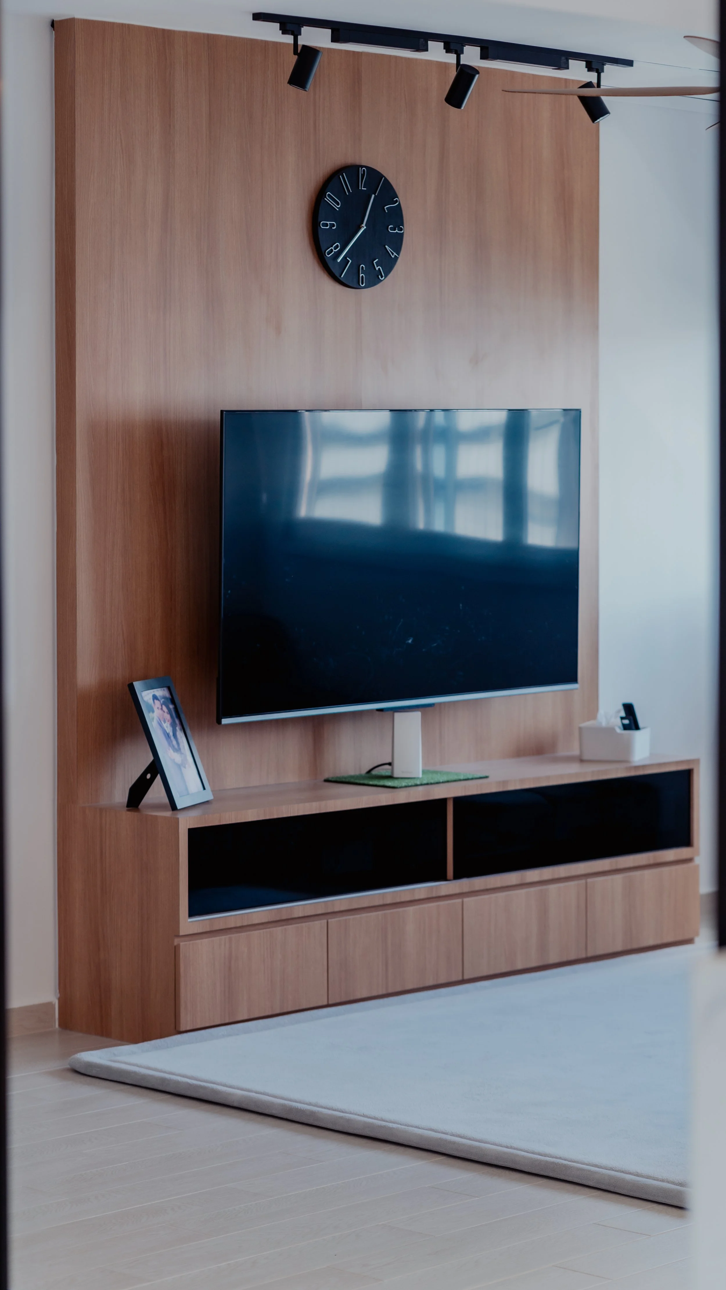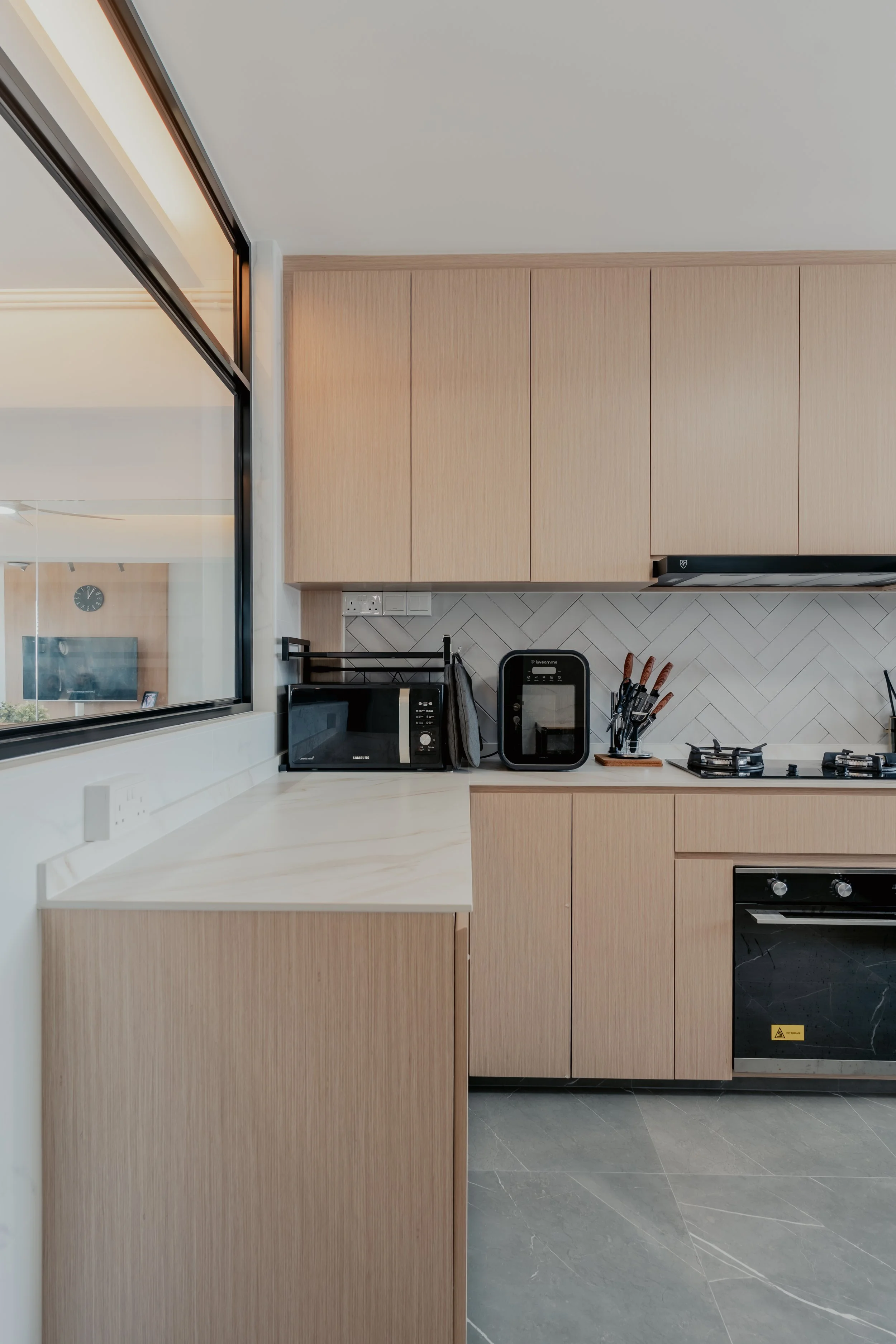 The homeowners wanted a clean and calming space with a modern edge. We used warm oak laminates, matte black accents, and an open layout to keep the home bright and clutter-free.