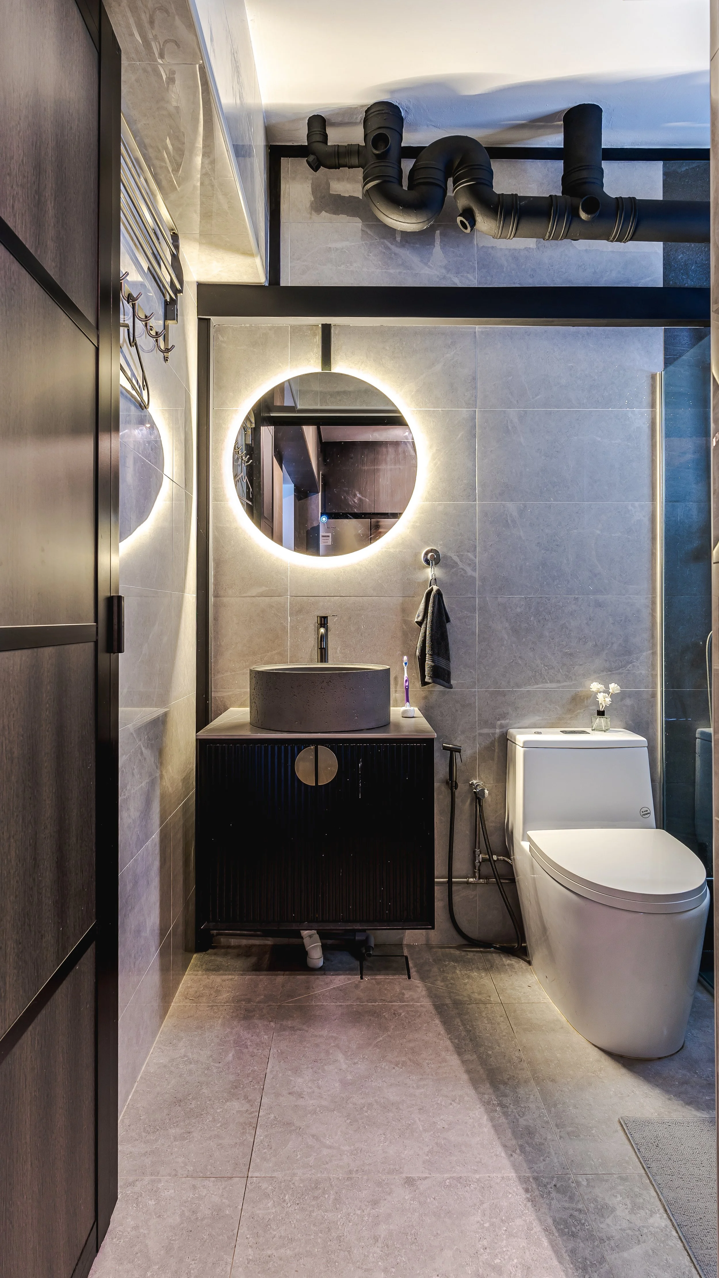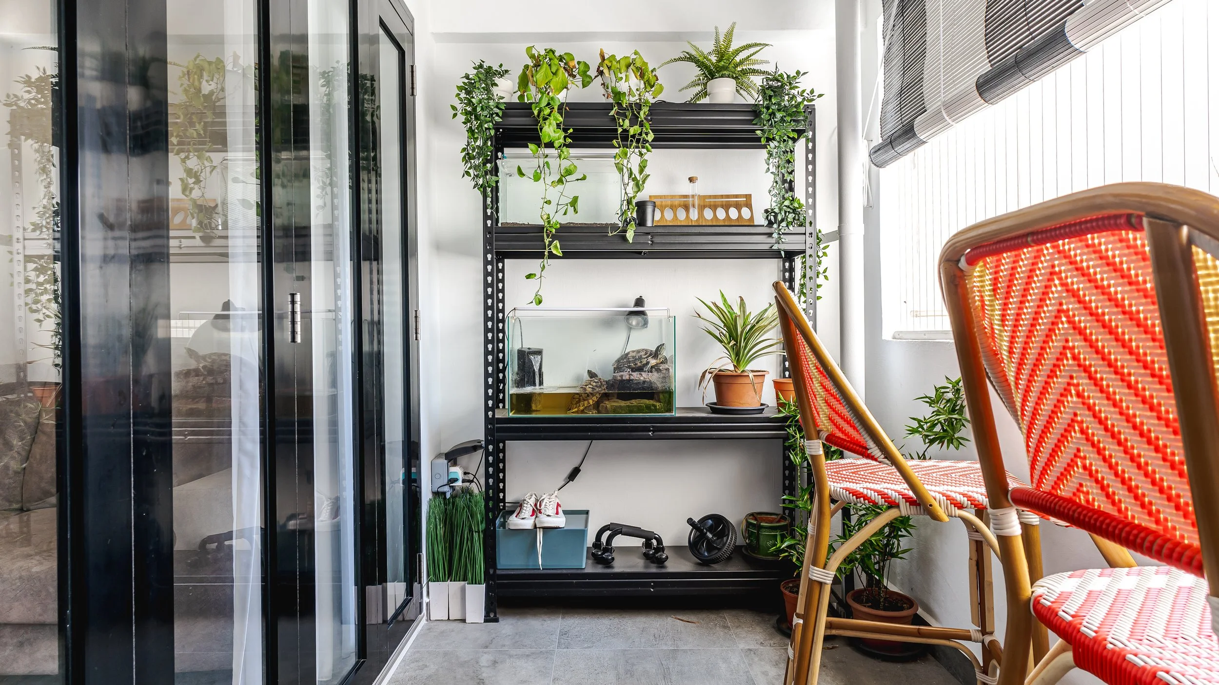 The homeowners wanted a clean, cosy home with natural warmth and a touch of personality. They requested a functional balcony for plants and a pet terrarium, along with a living space that feels bright but grounded.